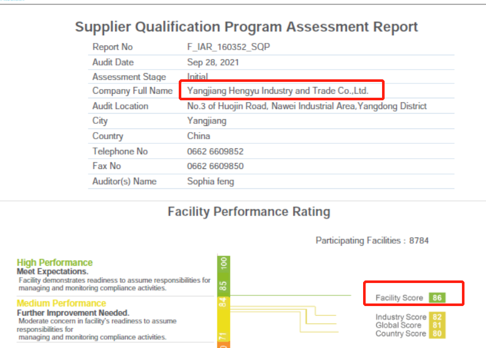 陽江市恒裕工貿(mào)2021年在創(chuàng)思維輔導(dǎo)下通過WCA/SQP驗廠,并取得WCA最高等級綠燈86分。