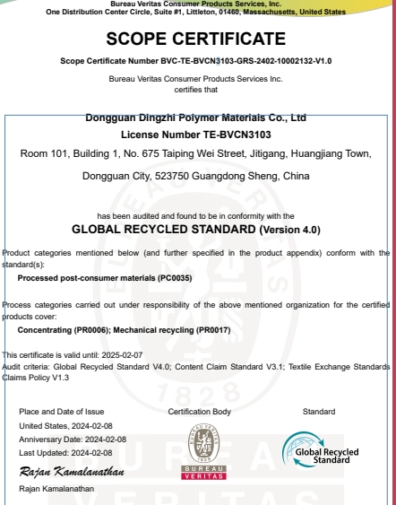 在創(chuàng)思維驗(yàn)廠網(wǎng)老師專業(yè)技術(shù)、全程跟進(jìn)耐心細(xì)致輔導(dǎo)以及公司全體員工配合下,一次性順利通過GRS認(rèn)證,為將來公司發(fā)展奠定了良好的發(fā)展基礎(chǔ),既開拓了市場(chǎng)同時(shí)也增加了消費(fèi)者對(duì)公司的信賴,在這里再次祝賀東莞鼎智高分子材料有限公司2024年一次性成功通過GRS認(rèn)證,同時(shí)也期待未來再次與創(chuàng)思維驗(yàn)廠網(wǎng)合作!