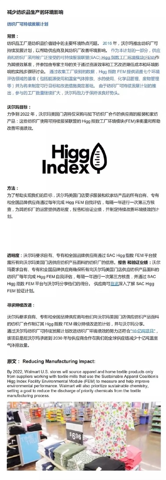 Walmart沃爾瑪要求供應(yīng)商2022年前完成HIGG FEM環(huán)境自評(píng)驗(yàn)廠